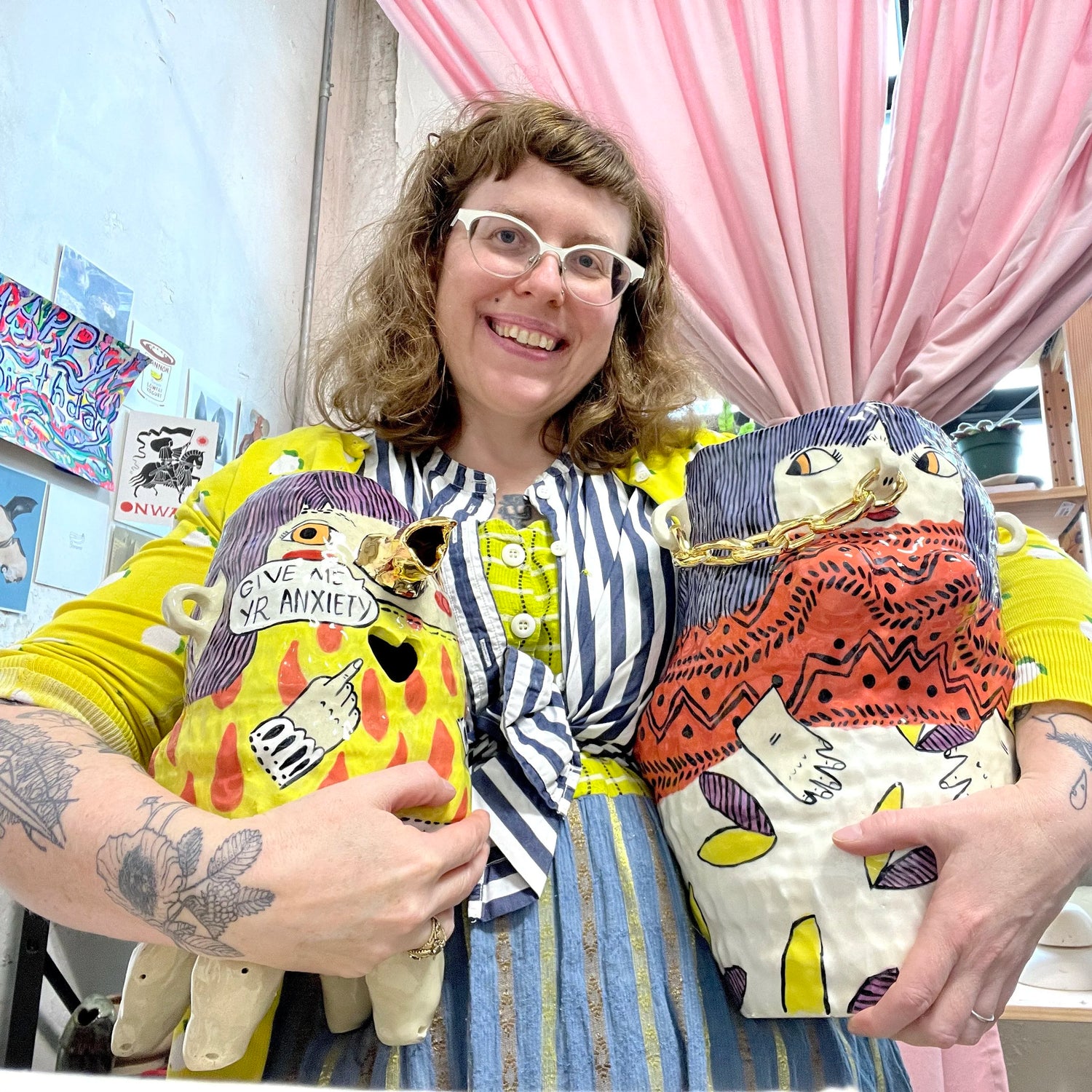 Erika Rier is a self-taught interdisciplinary artist creating mostly ceramics and art zines in a style she calls folk surrealism. Writing was her first love and she still secretly writes stories. Having lived in Maine, Vermont, Connecticut, NYC, Arizona, and Washington state; Erika now resides in Portland, OR. She also has one of each of the following: a husband, a daughter, and a cat she found in a hallway.