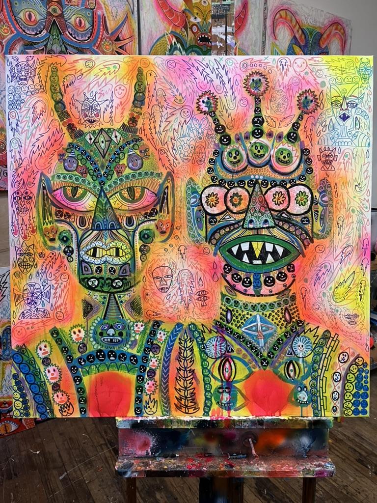 Acrylic, oil and ink on canvas