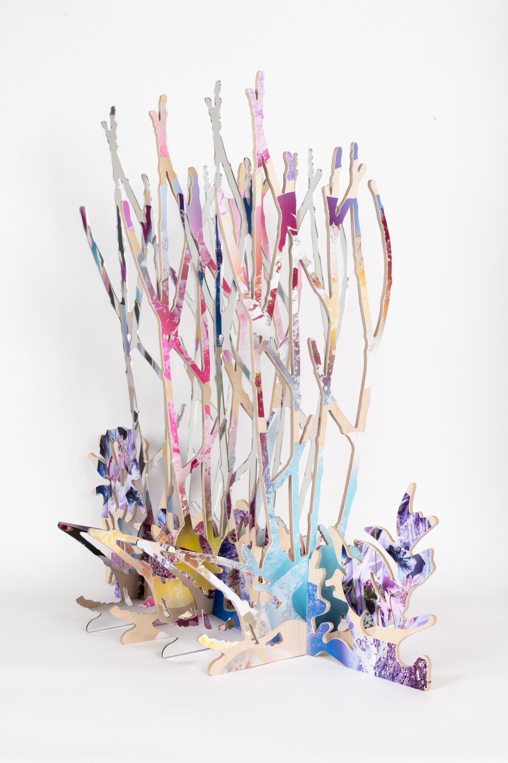 Sculptural archival inkjet print on birch plywood, acrylic, 21.474 x 41 in x 40.918