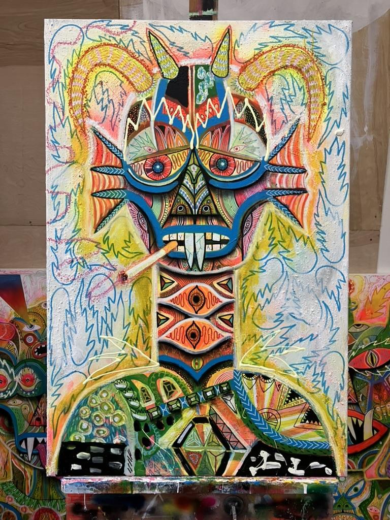 Acrylic, oil and ink on canvas