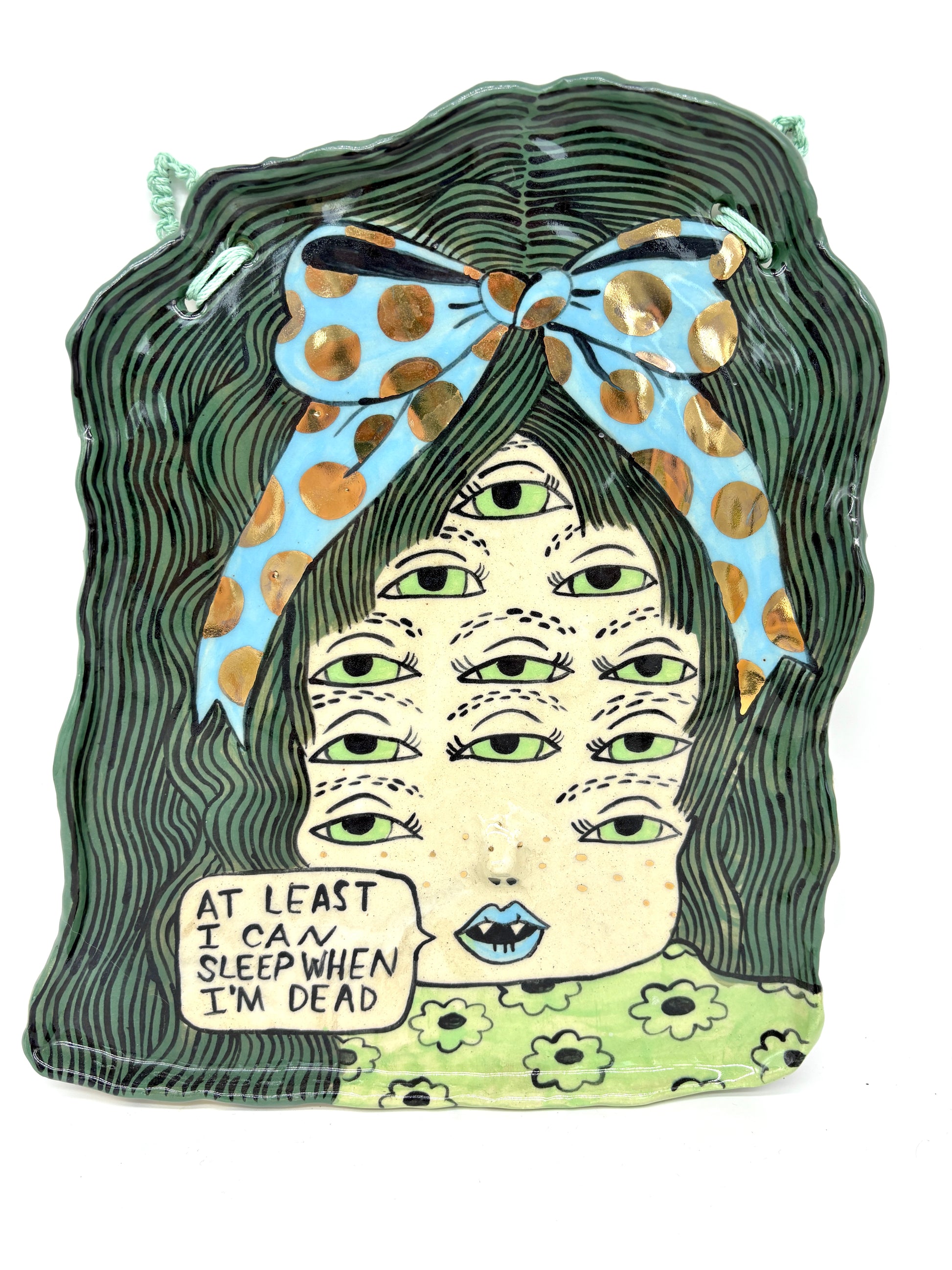 Stoneware, underglaze, glaze, 22k gold luster, 9” x 10.5”
