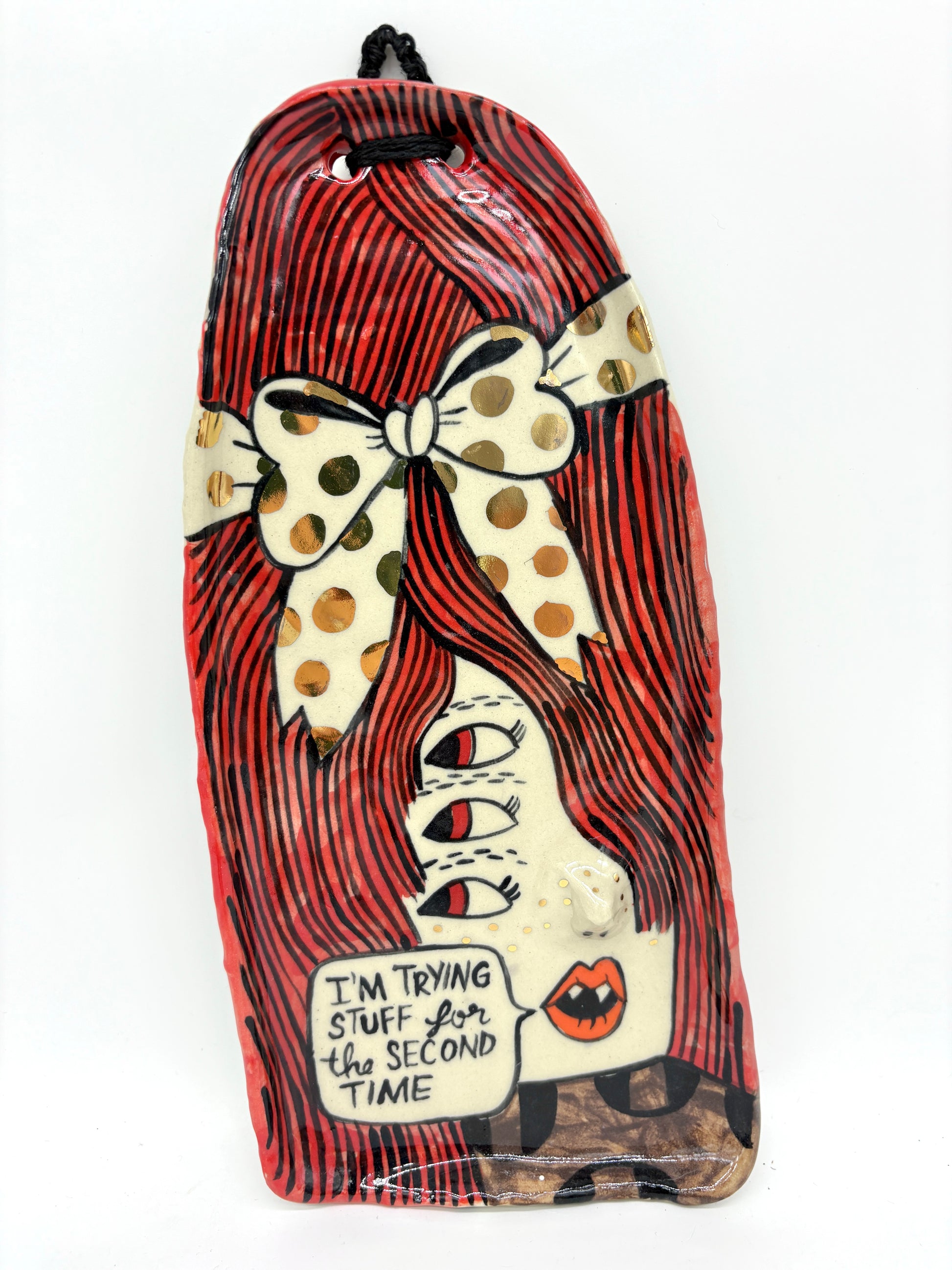 Porcelain, underglaze, glaze, 22k gold luster, 4.5” x 9.25”