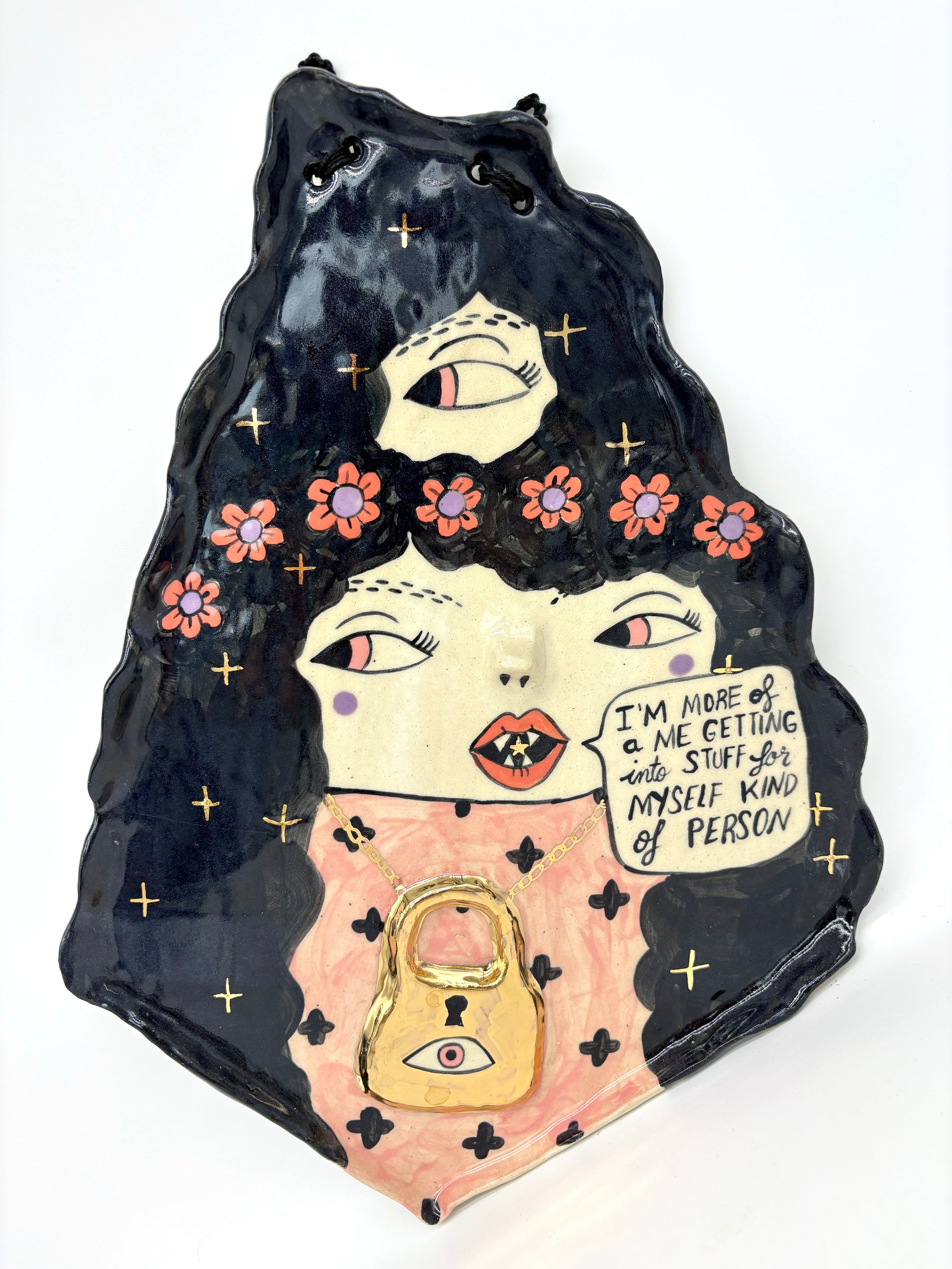Porcelain, underglaze, glaze, 22k gold luster; 10”x14”