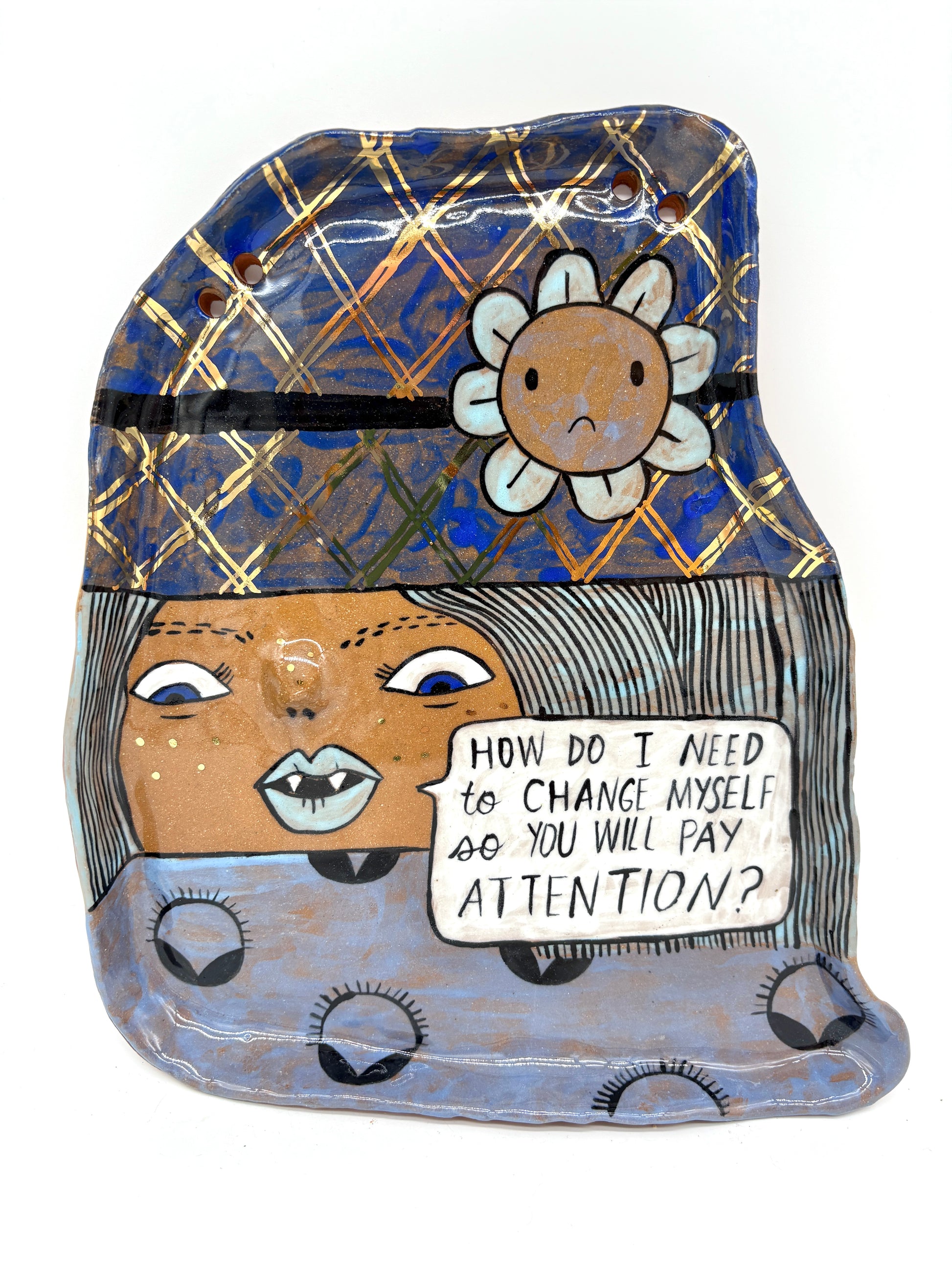 Porcelain, underglaze, glaze, 22k gold luster; 9” x 8”