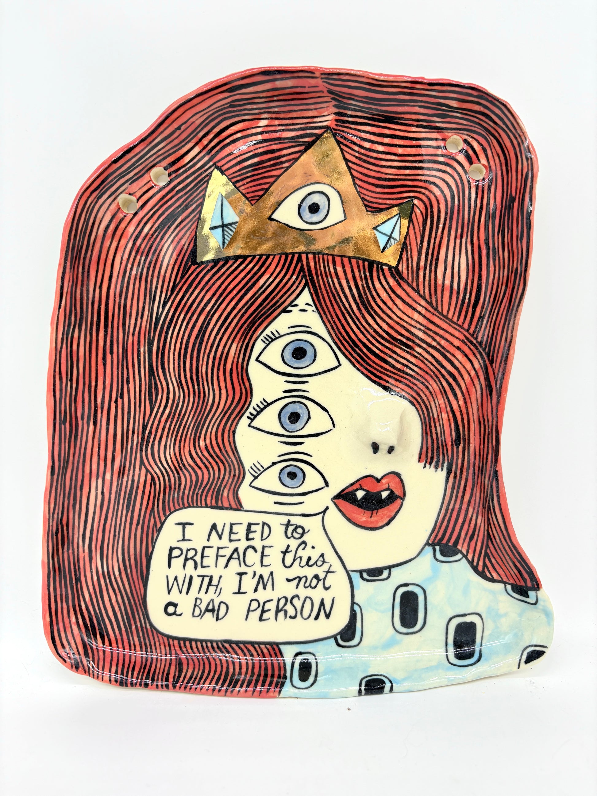 Porcelain, underglaze, glaze, 22k gold luster; 7.5” x 8.75”