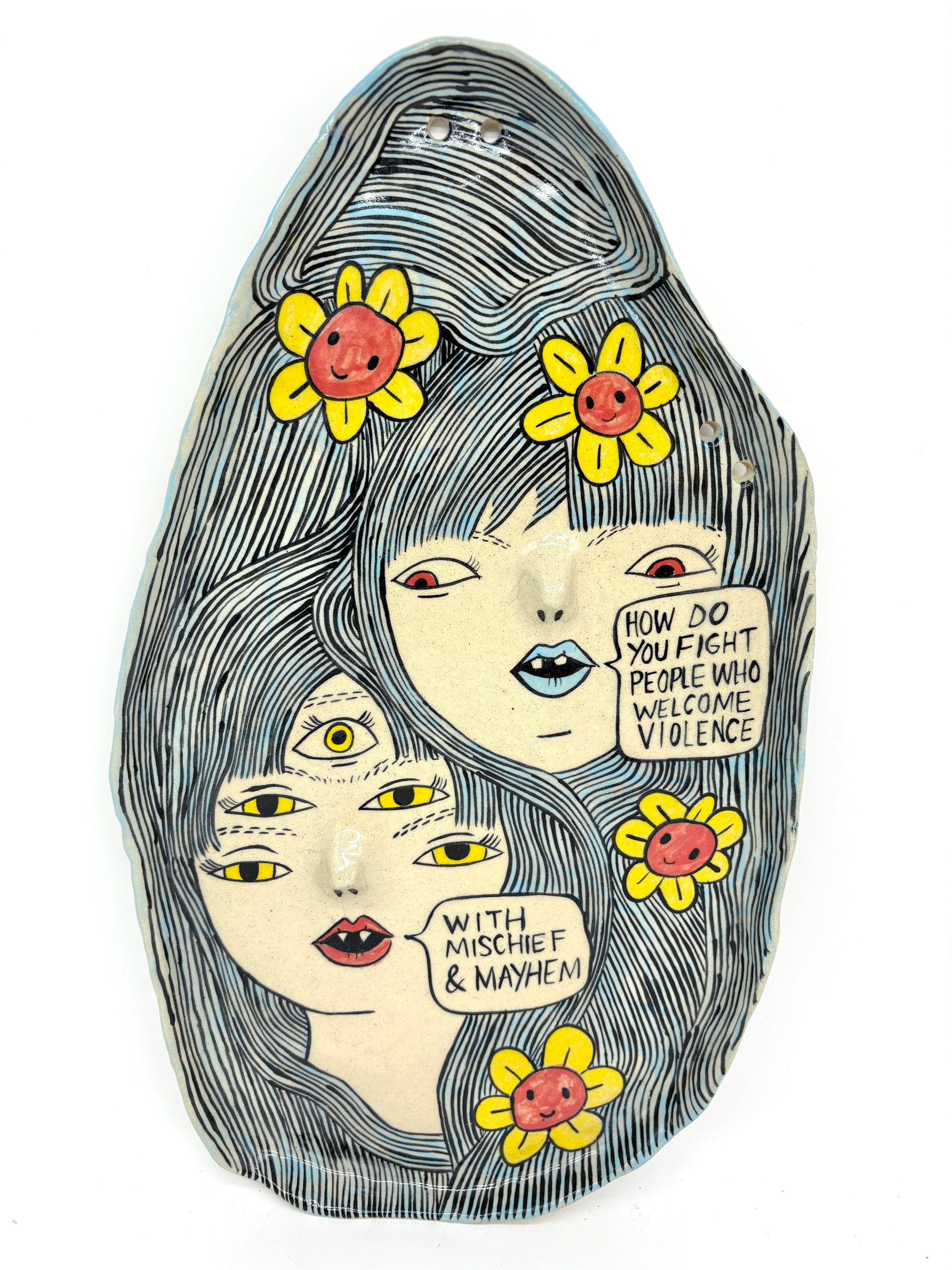 Stoneware, underglaze, glaze; 8” x 14 ”