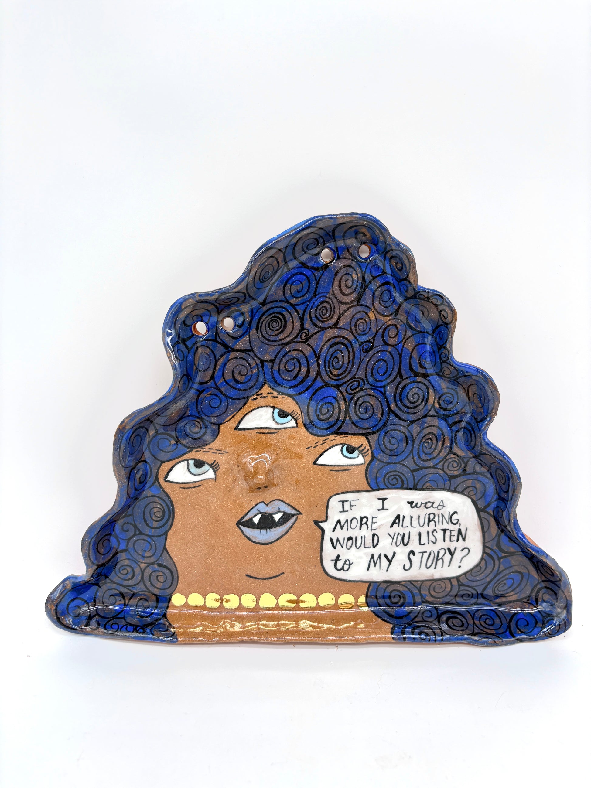 Red stoneware, underglaze, glaze, 22k gold luster; 9.75” x 7.75”