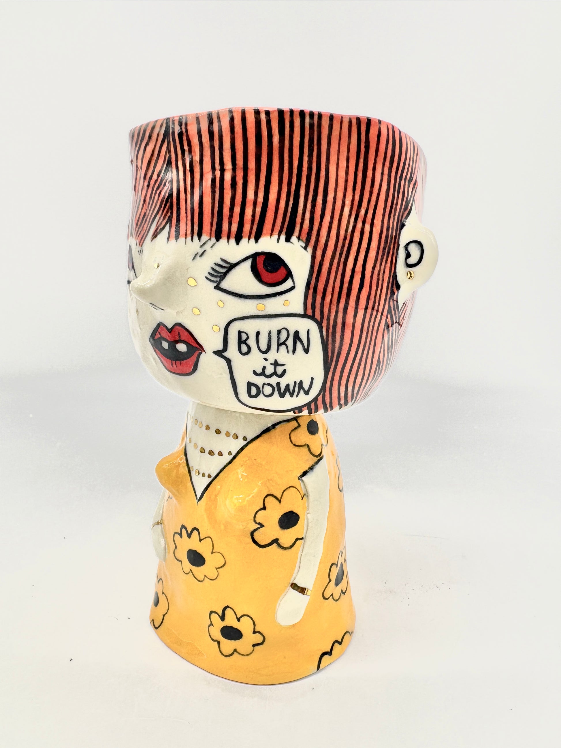 Porcelain, underglaze, glaze, 22k gold luster; 3.75” x 3.75” x 6”
