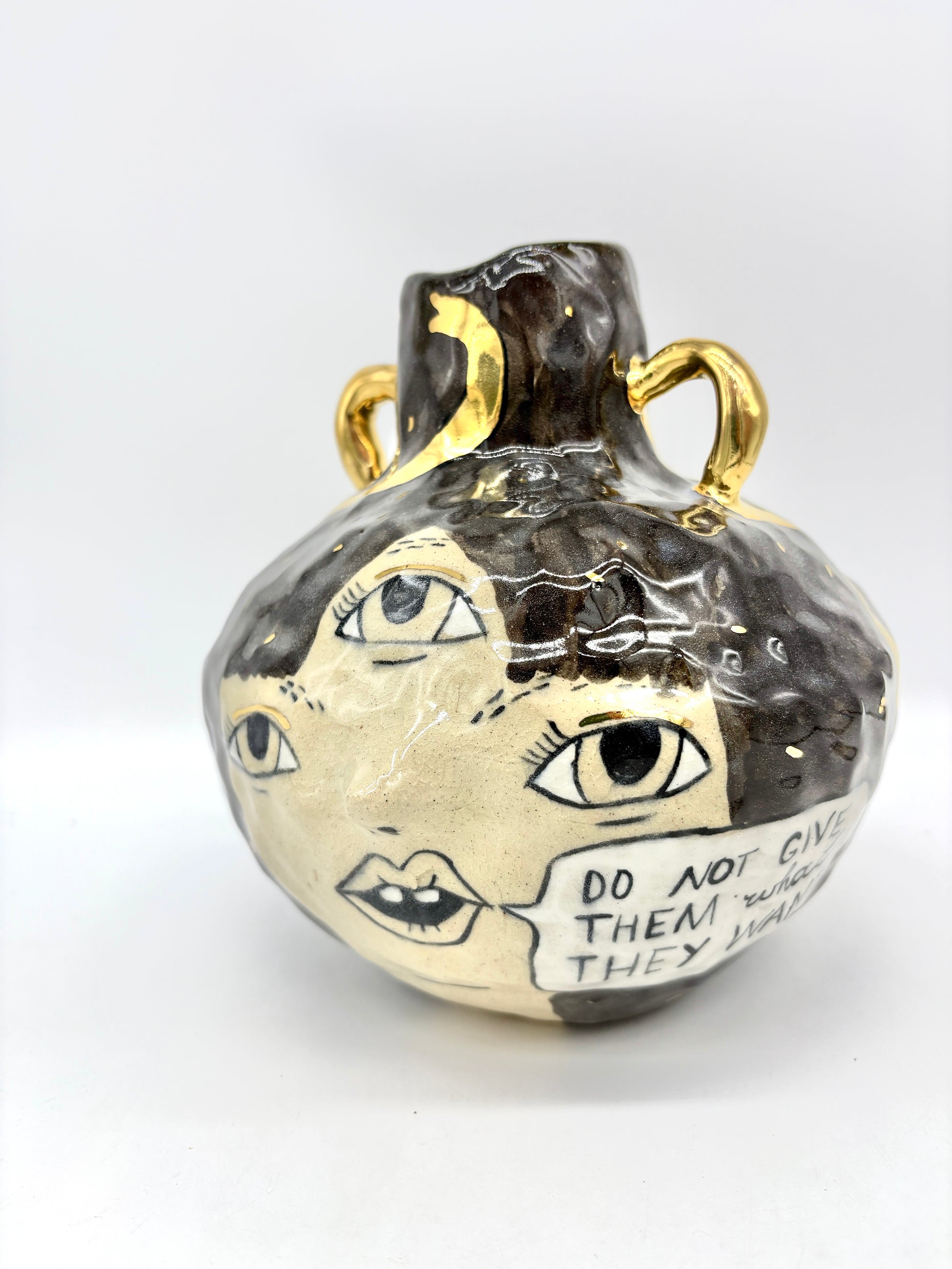 Stoneware, underglaze, glaze, 22k gold luster; 6.75” x 6” x 6”