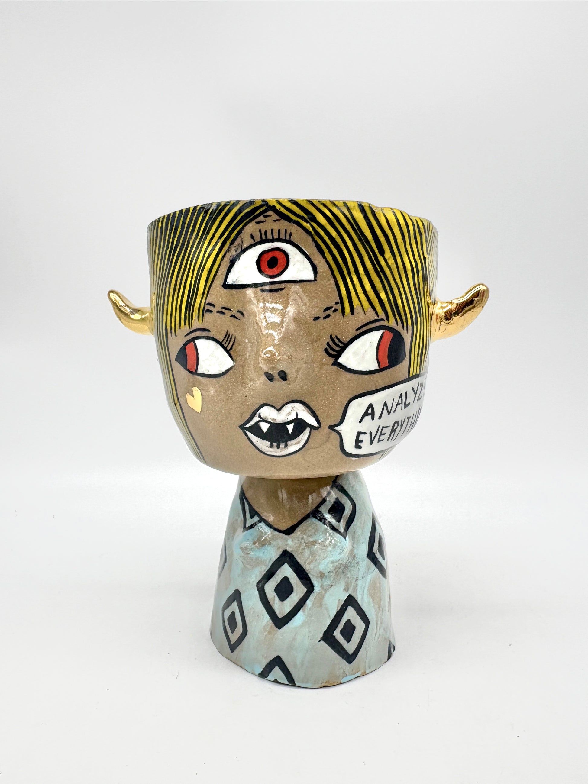 Stoneware, underglaze, glaze, 22k gold luster; 4.5” x 3.75” x 5.25”