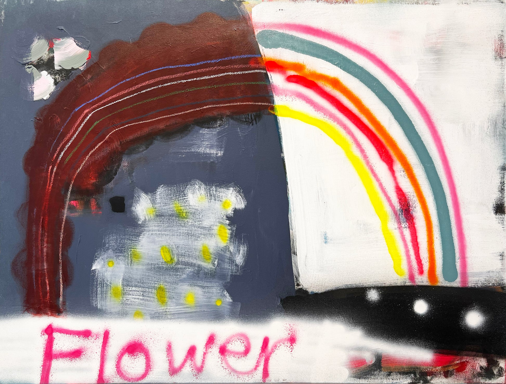 Acrylic, oil pastel on canvas