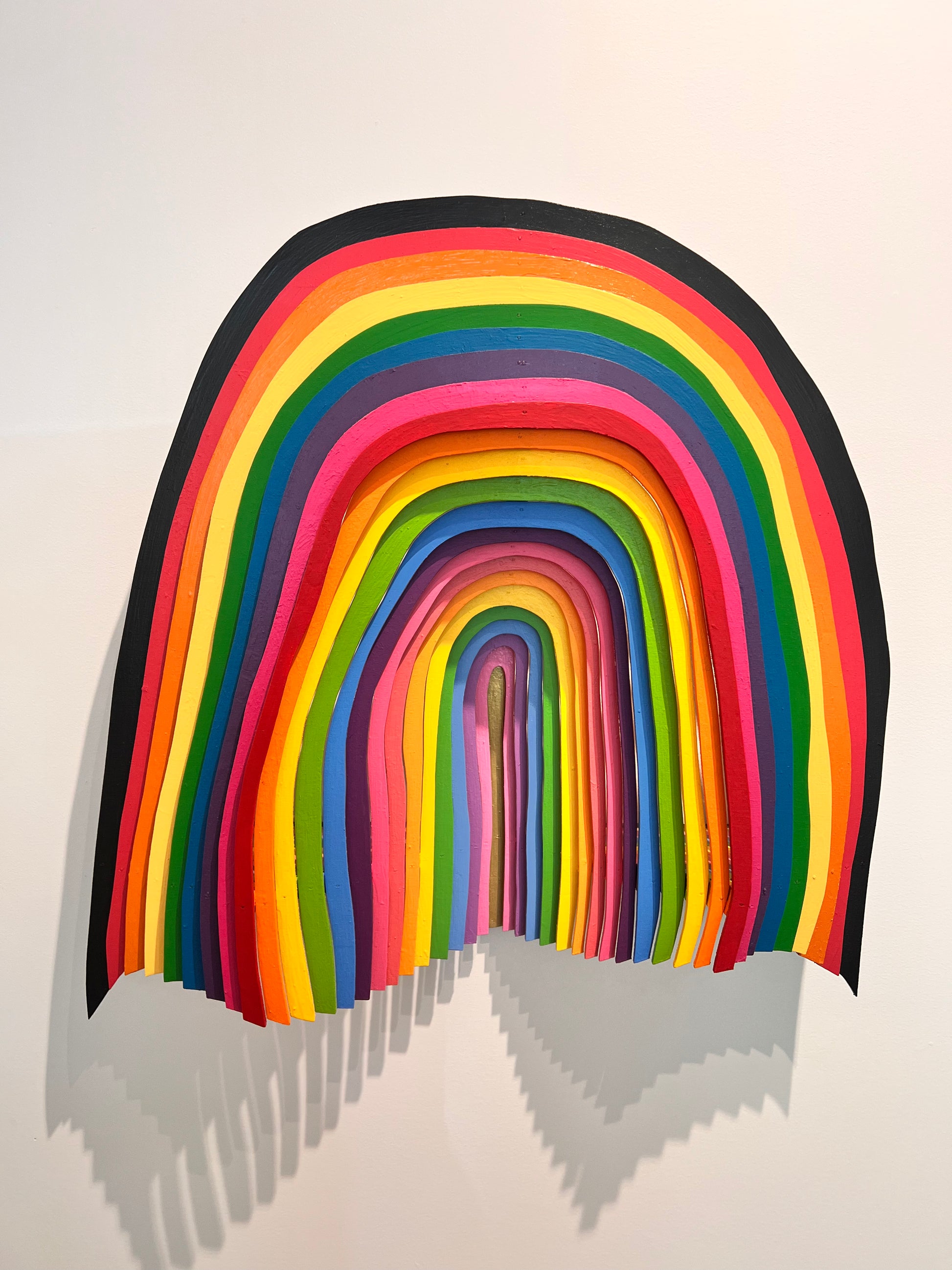 giant wood cut 3D rainbow of love, painted with acrylic paints, 28 ½ X 29 X 7 ½ "