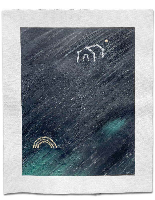 Acrylic, oil pastel, white charcoal, & found material on Frederix 7oz Canvas Sheet.