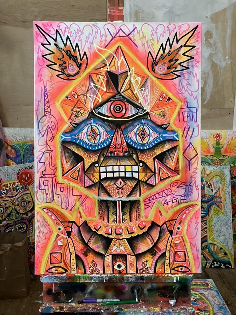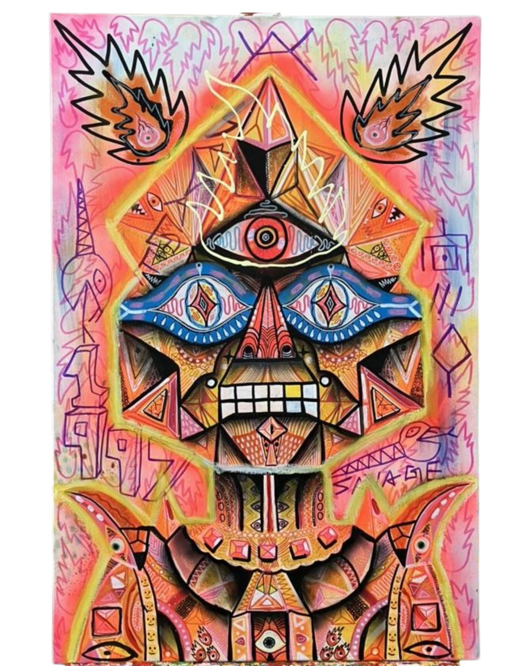 Acrylic, oil and ink on canvas
