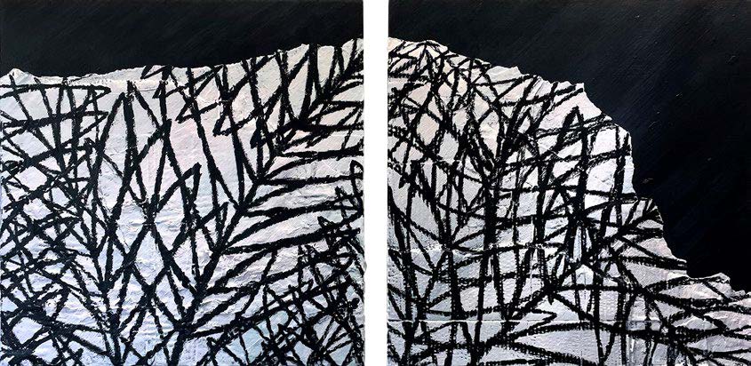 Acrylic & found material on handmade wood panels. Sold as a pair.